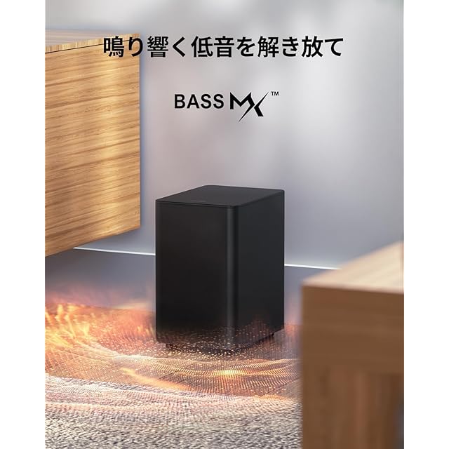 【圧倒的低音表現】ULTIMEA独自BassMX技術&250mm大型ドライバーが、深みのある重低音(45Hz~18kHz)を再生。弱/中/強の3段階から好みの低音レベルを選択可能。アクション映画やダンスミュージックも迫力満点!