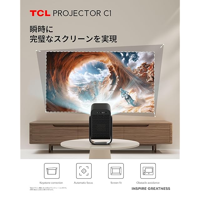 商品名:TCL C1 GTV ポータブルプロジェクター ネイティブ1080P対応 / 天井投影対応/内蔵ジンバル搭載/Google TV公式認証/Wi-Fi・Bluetooth対応/完全密閉型光学エンジン / 8Wドルビーデジタルオーディオ / 最大120インチ投影