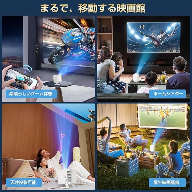 ✅【長寿命10万時間ランプ&幅広い互換性】 省エネ設計の最新高品質ランプを採用し、最大100,000時間の長寿命を実現。180日間の製品付きで安心してご使用いただけます。HDMI、USB、3.5mmオーディオポートを搭載し、PC、DVDプレーヤー、USB、ゲーム機、スピーカーなど様々なデバイスに対応。家庭用シアターやアウトドア上映にも最適です。