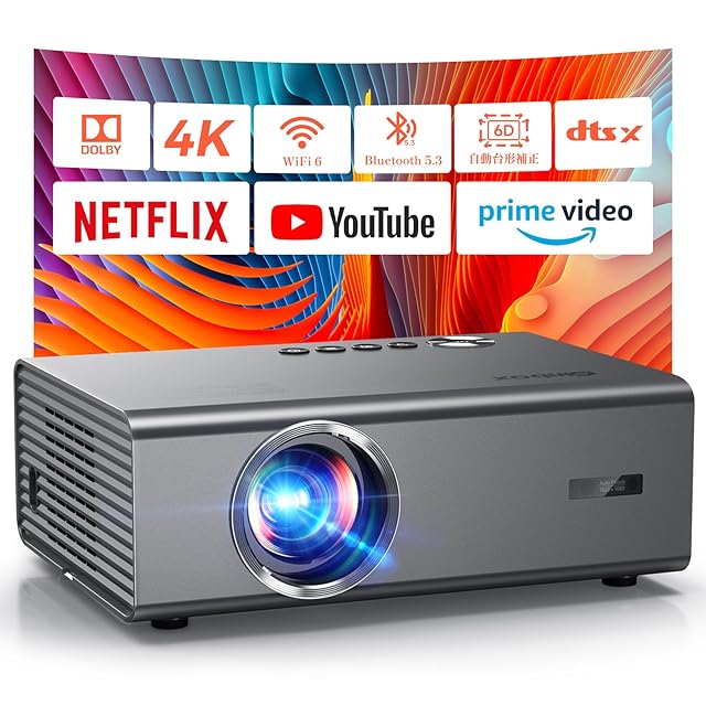 【高速接続 – Wi-Fi 6&Bluetooth対応】 Wi-Fi 6を搭載し、iOSやAndroidデバイスからのラグフリーなストリーミングとスクリーンミラーリングを実現。動画視聴、プレゼンテーション、ゲームプレイも快適に楽しめます。 さらに、デュアルBluetooth対応で、外部スピーカーやヘッドフォンに接続可能。プロジェクター自体をBluetoothスピーカーとしても利用できます。