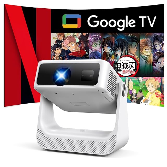 YOWHICK プロジェクター 4K【Google TV搭載・スタンド一体型】家庭用 10000+アプリ対応 1200ANSI高輝度 スピーカー内蔵 天井投影 自動台形補正 1080P 小型 静音 ホワイト H6