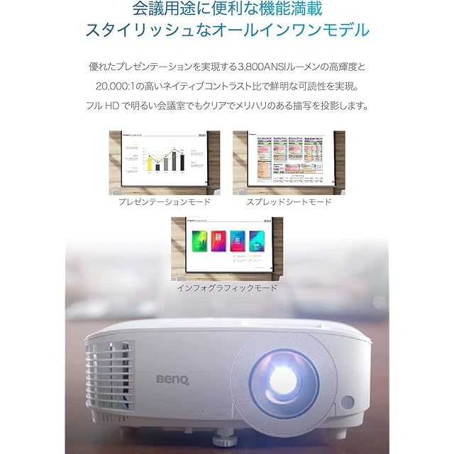 BenQ MH560 フルHD画質 DLPプロジェクター (3,800ANSIルーメン/軽量/パーティゲーム/映画鑑賞/10Wスピーカー内蔵/HDMIx2/ランプ寿命最長15,000時間)