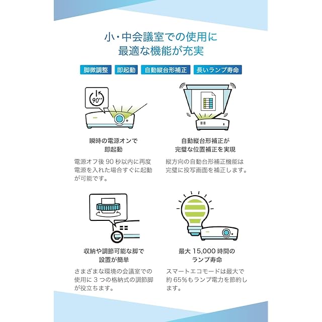 15,000時間のランプ寿命:スマートエコモードは最大70%もランプ電力を節約します