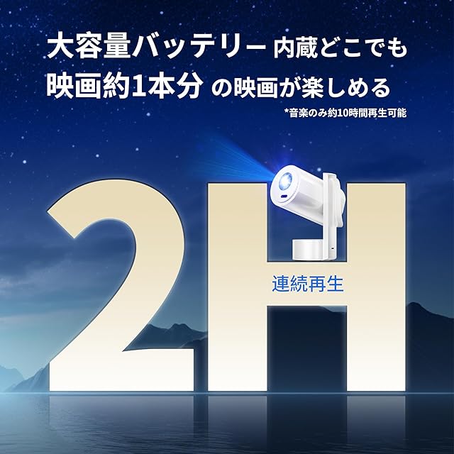 【室内でも屋外でも活躍|バッテリー内蔵で電源不要】 Sainellorのキャンプ用プロジェクター バッテリー内蔵は業界最新のAndroid TV 14.0システムを搭載し、大容量なバッテリーも内蔵しています。このモバイルプロジェクター 小型は完全に充電する場合には約2時間の動画再生または最大10時間の音楽再生が可能です。アウトドアでは電源ケーブルが不要、室内でもコードレスで、どこでもすぐにお美しい映像を楽しめます。
