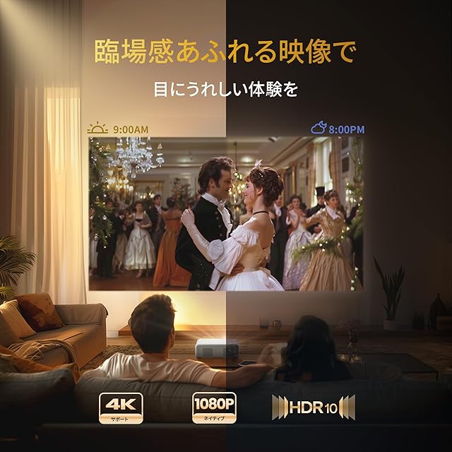 【目に優しい1080P・スピーカー内蔵・Dolby対応】D1ホームプロジェクターは高品質のチップと最新の技術を採用して、1080Pネイティブ解像度と200ANSIルーメンの高輝度を実現します(*一部製品における輝度表記の過大表示にご注意ください)。4K映像にも対応し、50%~100%のズーム機能により最大200インチの大画面投影が可能です。内蔵8W×2のスピーカーにDolbyサウンド技術を採用、外部スピーカー不要で劇場級の立体音響を再現します。複雑な設定は一切不要で、自宅に置くだけで映画館さながらの視聴体験をお楽しみいただけます。