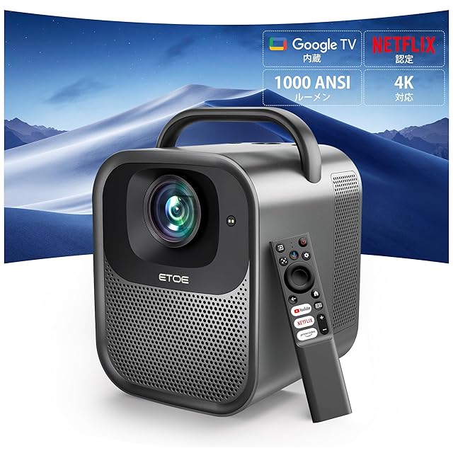 【Netflix公式ライセンス・Dolby対応 】プロジェクター Google TV搭載 1000ANSI 5G WiFi Bluetooth 5.1【オートフォーカス/自動台形補正/ 10W*2スピーカー/防塵/天井吊り/三脚/スマホ/タブレット/PC/TV Stick/Switch/PS 対応】ETOE Seal Pro ホームプロジェクター - 黒