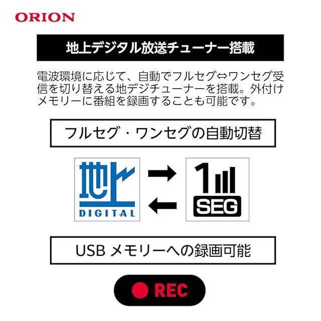 地上デジタル放送チューナー搭載。電波環境に応じて、自動でフルセグ⇔ワンセグ受信を切り替える地デジチューナーを搭載。外付けメモリーに番組を録画することも可能です。