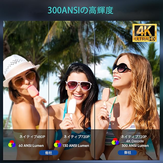 3.【300ANSI・FHD1080P対応】EGOBASHY300 Pluプロジェクターは、輝度を300ANSIに劇的に向上させ、高解像度1080pFHDおよび4K映画をサポートします。 4Kプロジェクターは色域を95%以上に高め、鮮やかで生き生きとした画像を映し出します。 当社の4Kプロジェクターは、色域を95%以上に拡大し、鮮やかな映像を映し出します。 ホームシアター、スポーツイベント、ビジネスシーンに最適で、高品質な映像をお楽しみいただけます。