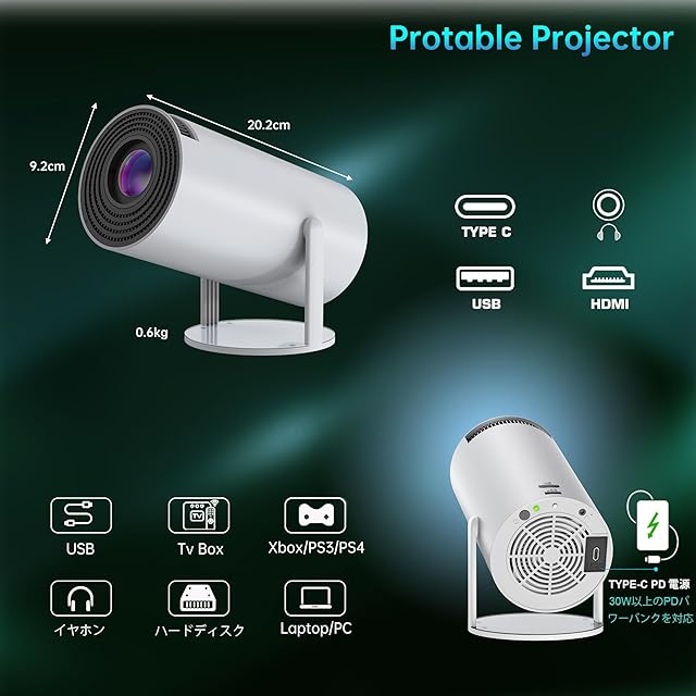 1.【USB-C・モバイルバッテリー対応・ポータブル】EGOBAS USB-C プロジェクターは、USB-C 電源をサポートする最初のプロジェクターで、30W 以上の PD モバイル電源をサポートし、20000mAh で 3 時間のビデオを再生できます。サイズはわずか20x9cm、重量はわずか0.6KGで、バックパックに簡単に入れて持ち運ぶことができ、キャンプに最適です。