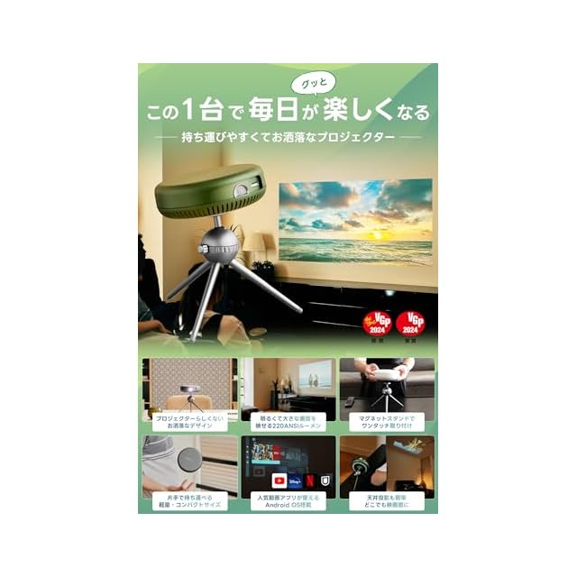 【VGP 2024 2冠受賞】Adget Pocket Projectorは、日本最大級のオーディオビジュアルアワードVGP 2024にて「映像音響部会」「ライフスタイル分科会」を受賞しました!日常の様々な場面で活躍する機能性を高く評価していただきました