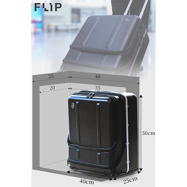 [EDISON LAB] 棚になるスーツケース47L静音キャスター外して機内持ち込みできるFLIPフリップ ポリカーボネート軽量Sサイズ,ダブルTSAロック、フロントオープンで17インチPCも収納ビジネス旅行にキャスター交換で簡単に自分で修理メンズ、レディースに人気(ブラック)