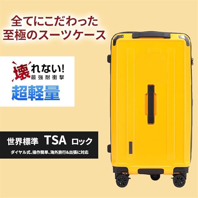 [DINGHANG] スーツケース キャリーケース キャリーバッグ TSAロック 耐衝撃 静音 軽量 旅行 出張 大型 Lサイズ 5泊以上 26インチ 無料受託手荷物 イエロー