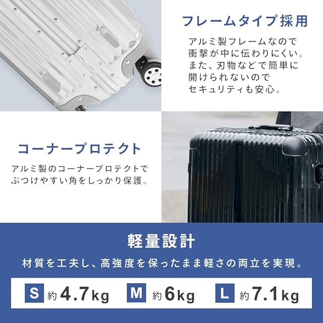 スーツケース アイリスプラザ キャリーバッグ アルミフレーム 軽量 Mサイズ 79L ダブルキャスター 3~7泊 旅行 シルバー
