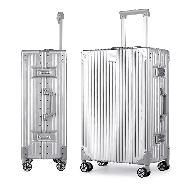 [RoamRover] スーツケース アルミフレーム 機内持ち込み キャリーケース tsaロック付 キャリーバッグ 大容量 轻量 360度回転 静音 ダブルキャスター オシャレ 海外旅行出張 修学 (シルバー, XXLサイズ/75L)