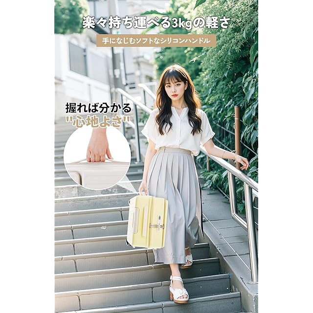 【スーツケース 機内持ち込み・製品仕様】Sサイズ:約W34×D24×H55cm / 重量:約3.5kg / 容量:約39L / 材質:ABS+PC(本体)、TPE(キャスター)機内持ち込み可能。Mサイズ:約W42.5×D26×H67cm / 重量:約4.5kg ※寸法は手作業で計測しておりますので、1~3cmの誤差が生じる場合がございます。