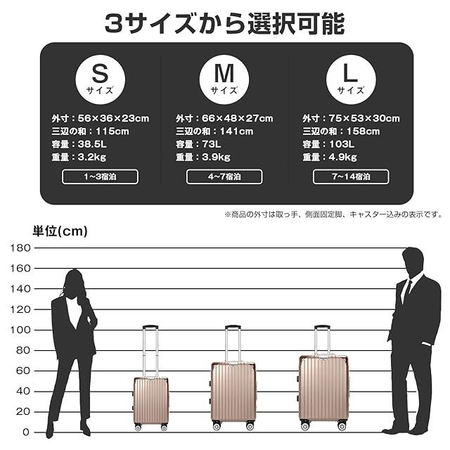 color:ゴールド size:L サイズ103L(7泊~長期旅行):