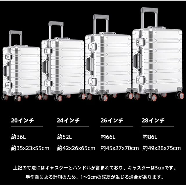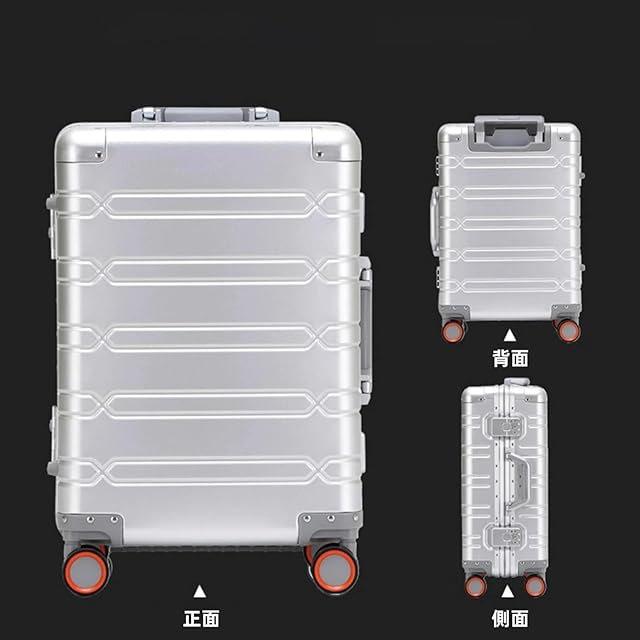 【オールアルミ合金コーナー&収納力抜群】コーナー部分は厚めのアルミ合金板を採用し、四隅が丸みを帯びているので、衝突の心配なくスーツケース本体を効果的に保護します。小さなアイテムでもメッシュポケットで一目瞭然です。このスーツケースは収納力が抜群で、たくさんの荷物を収納できます。