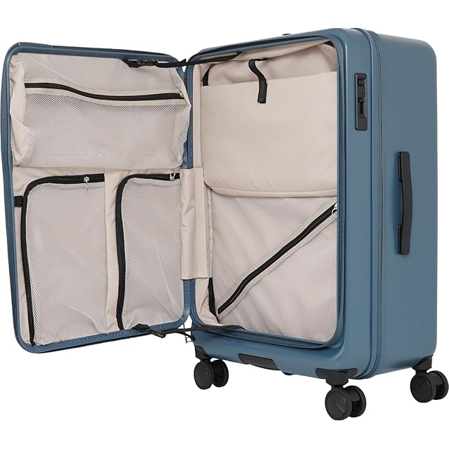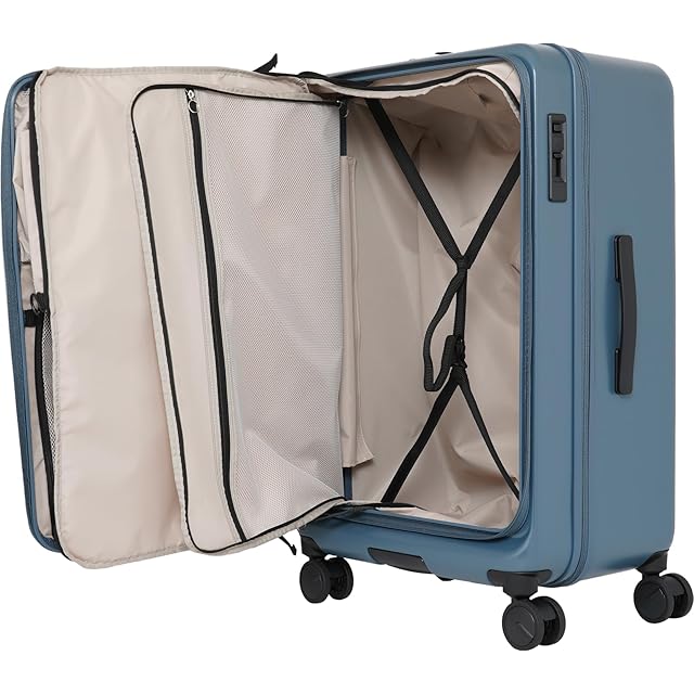 【5~6泊におすすめのMサイズスーツケース】センターファスナーを使えばケース中央の開閉部をオープンできるので、スーツケースを大きく開いてしっかりと整理整頓できます。