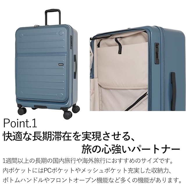 [Oltimo] スーツケース フロントオープン Lサイズ 軽量 TSロック ストッパー付き 97L 5.1kg 67cm OT-0857-67 アクアマリン