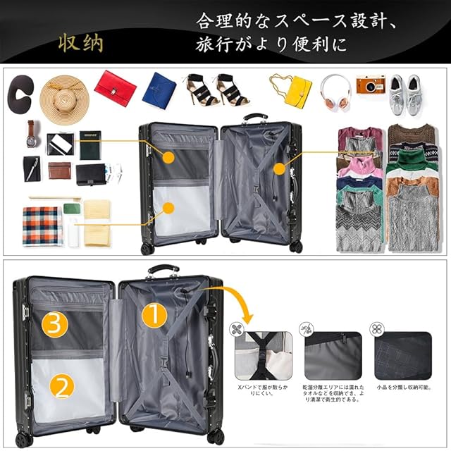 【丈夫かつ軽量PC素材&TSAダイヤル式ロック】表面素材は高耐衝撃性を持つPC(ポリカーボネート)を100%使用。高弾性で、変形しにくい。小さな傷などは正規品の範囲内でしています。世界基準のTSAダイヤル式ロックが搭載されて、外出がより安全に。※鍵は航空会社検査専用のため本製品には付属しておりません。パスワードの設定方法については、メインビデオをご覧ください。ロックが開かない場合は、当社までご連絡ください。