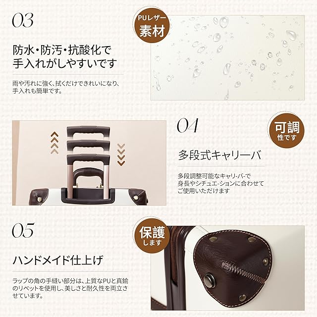 【完璧な品質】ヴィンテージラゲッジはPUレザー製で、手作りのステッチが施されています。頑丈、耐荷重性、圧縮強度、軽量、耐摩耗性、お手入れが簡単です。