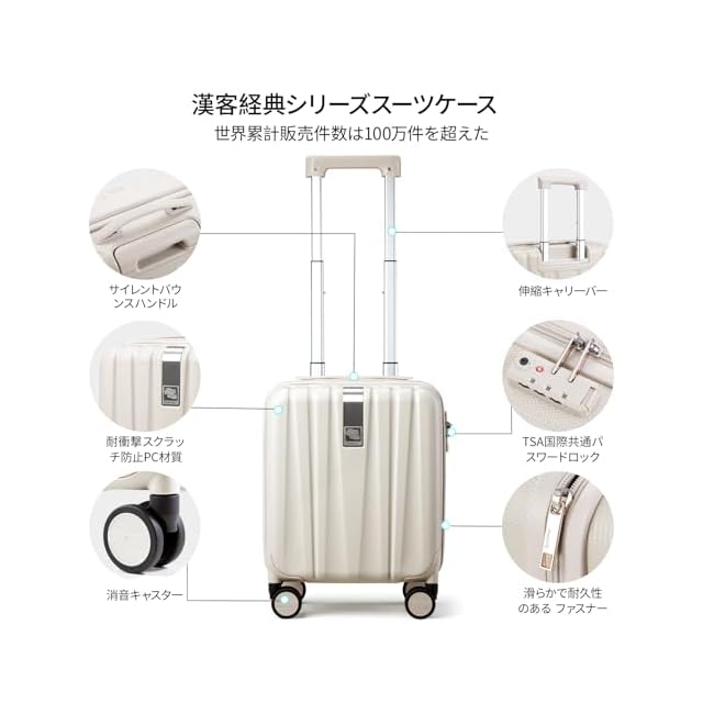 [Hanke] キャリーケース スーツケース SSサイズ 超軽量 機内持ち込み 1泊2日 耐衝撃PC材質 静音回転自在ホイール ショートトラベルスーツケース TSAロック搭載(14インチです/アイボリーホワイト)