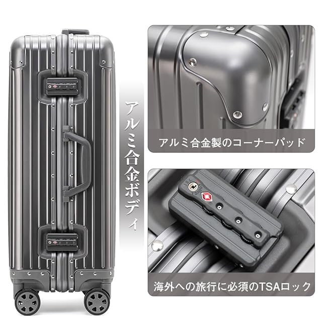 [Voxkin] スーツケース アルミ合金ボディ キャリーケース TSAロック 機内持ち込み オールアルミ合金 大型 キャリーバッグ 大容量 静音 耐衝撃 軽量 海外旅行 出張 おしゃれ 2泊3日 Sサイズ