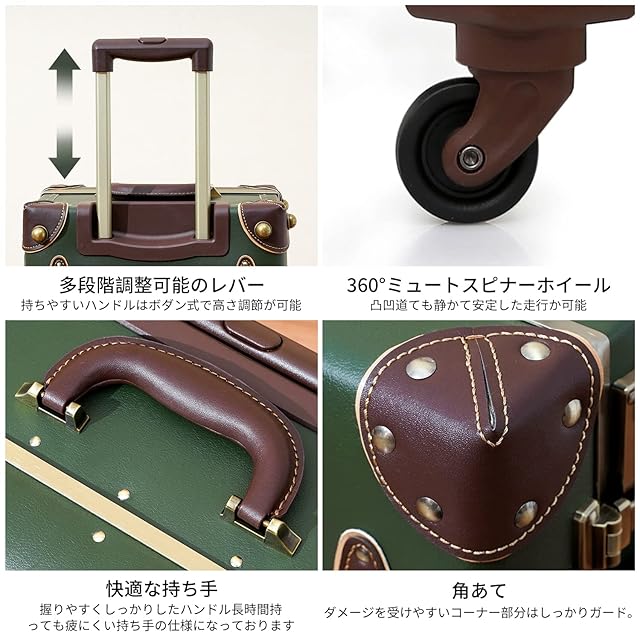 [urecity] トランクケース キャリーバッグ 革 手作り 復古主義 レトロ おしゃれ かわいい フレームタイプのスーツケース 超軽量 旅行 出張 大容量 静音四輪