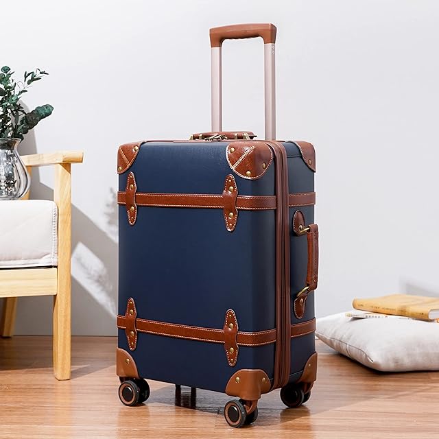 [NZBZ] ミュートスピンナーホイール付きのレトロなキャリーケース、おしゃれトランクスーツケース可愛い、キャリーケース 機内持ち込み 軽量、ビジネス、学校、旅行に適した軽量トロリースーツケース (S(20") 型, ブルー)