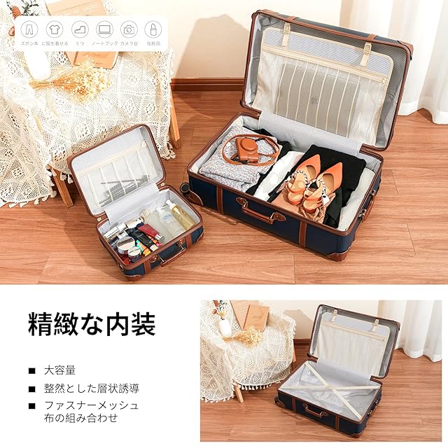 【完璧な品質】ヴィンテージラゲッジはPUレザー製で、手作りのステッチが施されています。頑丈、耐荷重性、圧縮強度、軽量、耐摩耗性、お手入れが簡単です。