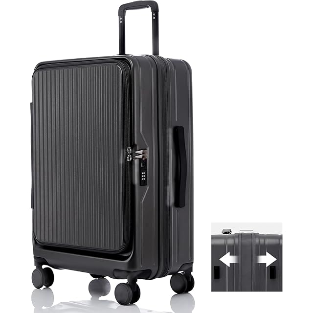 [Yuweijie] スーツケース キャリーケース 片開き 拡張機能付き フロントオープン 大容量 機内持ち込み 超軽量 ファスナータイプ カップホルダー付き TSAロック キャリーバッグ 横開き ビジネス 旅行 出張 一週間 ダークブラック 70~85リットル Lサイズ 7泊