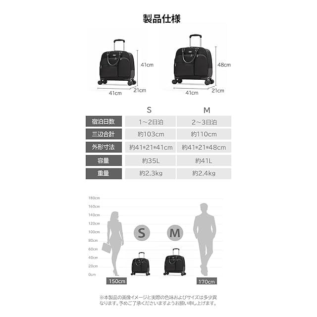 【機内持ち込み可能なサイズ】:27リットルと34リットルの二つの容量を提供します。機内持ち込み可能なサイズで、手荷物としても便利です。短期旅行や週末旅行、ビジネス出張に最適です。また、お子様の小物収納としても役立ちます。製品サイズ:長さ41cm*幅18cm*高さ42cm(27リットル)、長さ42cm*幅19cm*高さ48cm(34リットル)