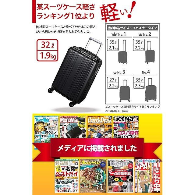 ✅【とにかく軽い!国内最軽量級】1.9kg 約32L 【機内持込サイズ】Sサイズ ✅300円コインロッカー対応 ✅国内線100席以上 ✅LCC 機内持ち込み対応 【大きさ】 ■総外寸 高さ54.5cm ☓ 幅33cm ☓ 奥行23cm ■外寸 高さ46cm ☓ 幅32.5cm ☓ 奥行23cm