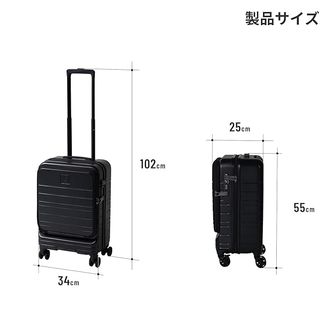 DOD(ディーオーディー) モナカ・コロコーロ(34) 1~3泊 機内持込可 ダブルキャスター TSAロック ストッパー 静音 フロントオープン BA126-BK