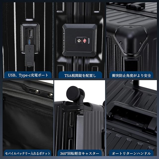 [GGQAAA] luggage 特別の収納 スーツケース出張 留学用スーツケース大型多機能大容量USB(Black, 42.5cm*36.5c (Black, Lサイズ/5-10泊/95L)