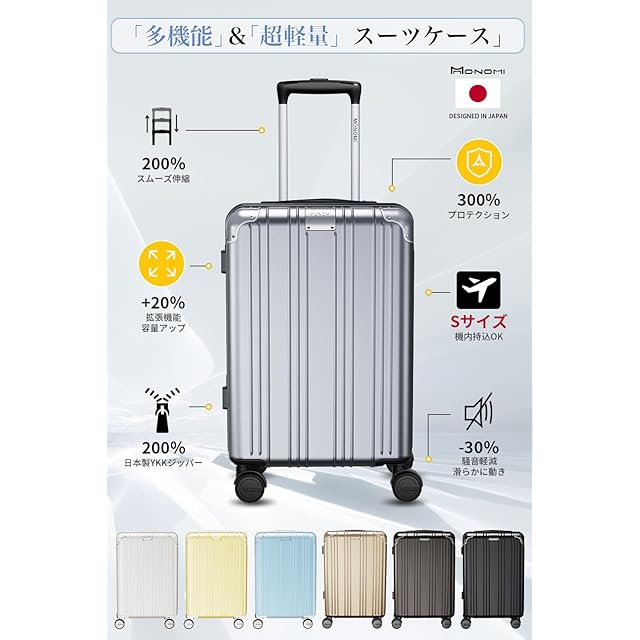 【安心の日本ブランド&1年間】MONOMIはあらゆるシーンで安心してご利用いただける日本のスーツケースブランドです。高品質にこだわり、アフターサービスにも対応しています。通常使用で1年以内に不具合が発生した場合、無料で修理または交換させていただきます