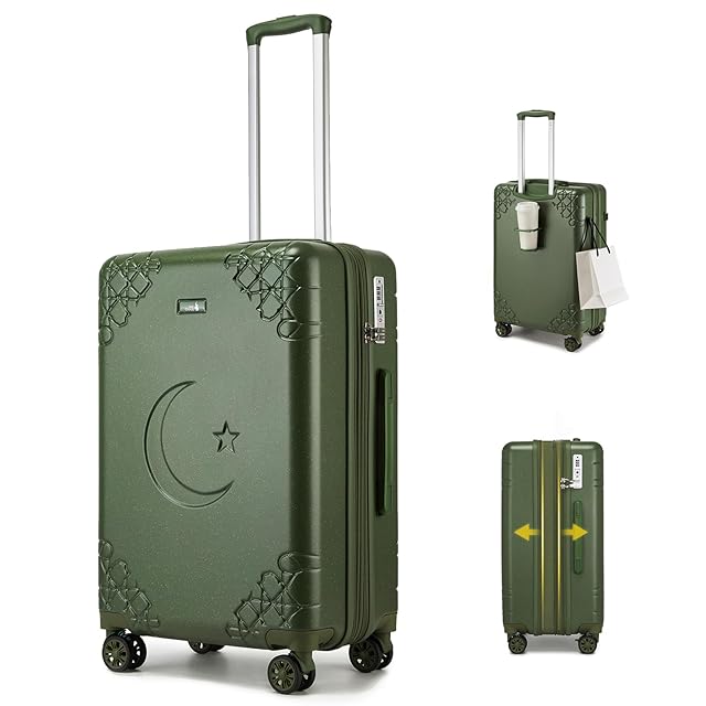 [Sea choice] スーツケース キャリーケース 機内持ち込み 拡張機能付き ストッパー付き 軽量 大型 S/M/Lサイズ キャリーバッグ 耐衝撃 大容量 ファスナータイプ 静音 ダブルキャスター TSAロック カップホルダー付き 隠しフック機能 多機能スーツケース 海外 旅行 ビジネス 出張 (Sサイズ、カーキ、40L、1~3泊)