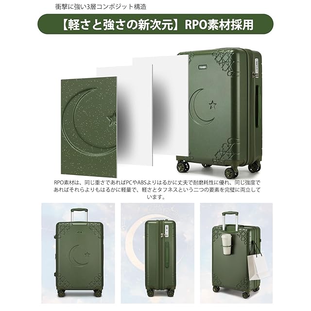 【軽量かつ超耐久RPO素材】航空機の預け入れにも耐える高耐衝撃性のRPO素材を採用。従来のポリカーボネートより30%軽量化を実現しながら、強度はそのままキープ。表面にはキズ防止加工を施し、長期間美しい見た目を維持。シンプルで洗練されたデザインが「おしゃれ スーツケース メンズ/レディース」 で人気です!