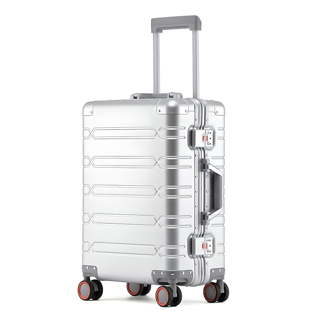 JIMSHUINIO スーツケース オールアルミ合金 キャリーケース 機内持ち込み キャリーバッグ 軽量 耐衝撃 オールアルミ合金 TSAロック搭載 静音 360度回転 旅行 ビジネス 出張 (シルバー,XLサイズ/7-10泊/86L)