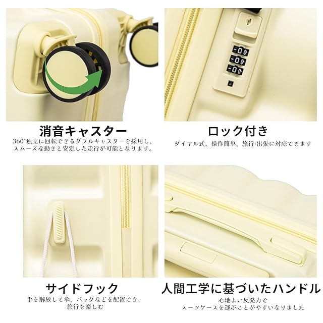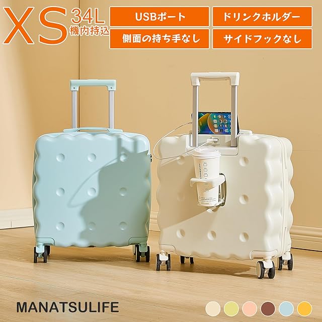 [Manatsulife] スーツケース 機内持ち込み 可愛い キャリーケース ミニサイズ おしゃれ カップホルダー付き USBポート付き 軽量 360度回転 ファスナータイプ 乾湿分離 PC材質 旅行 修学 XBM06 (ライトイエロー, XS(ミニ型/34L))