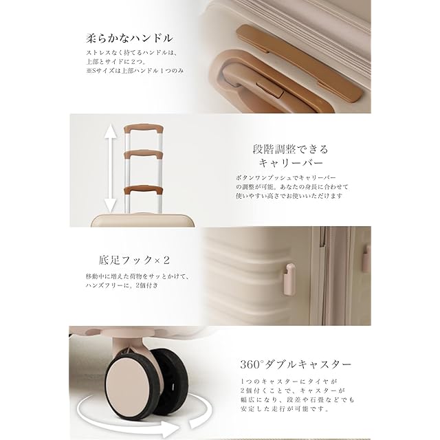 【キャリーバーの段階調整が可能】 ワンプッシュでキャリーバーの高さを調整できます。自分の身長に合わせて、使いやすい高さでご利用ください。