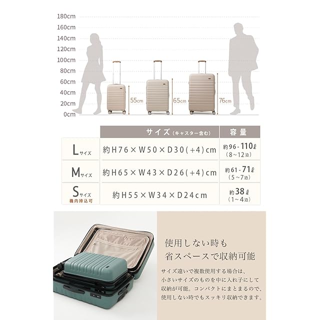 日本ブランド:FANCYWONDERLAND ファンシーワンダーランド【拡張機能付き】Lサイズ:H76×W50×D30(+D4)cm 容量:96L(拡張時約110L) 重量:約4.5kg 3辺合計:156(+4)㎝