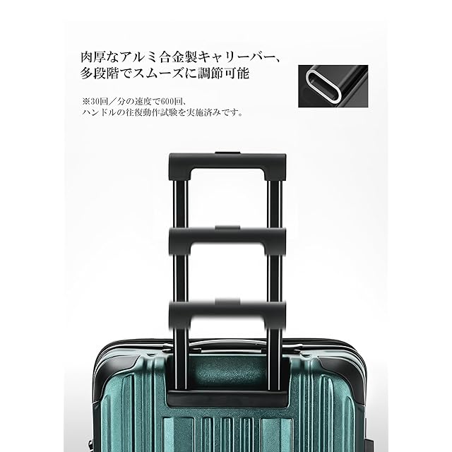 【TSAロック&多段階調整キャリーバー】米国運輸保安局認可のTSAロックを搭載し、海外旅行も安心。四隅にはしっかりとしたコーナーガードを配置し、衝撃からケースを保護。多段階調節可能な堅牢アルミ合金製キャリーバーで身長やシーンに合わせて快適に操作できます。