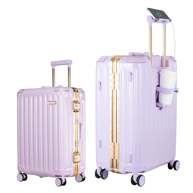 [GURAMU] スーツケース S M Lサイズ アルミフレーム USBポート付き 機内持ち込み 軽量 耐衝撃 キャリーケース キャリーバッグ カップホルダー付き 充電機能 泊まる かわいい 360度回転 大容量 海外旅行 国内旅行 (ライラックアッシュ, S) ke201s-ash