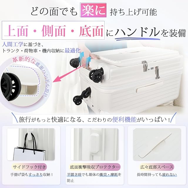 [SKYFLY] スーツケース 両開き フロントオープン キャリーケース Mサイズ 大型 大容量 軽量 多機能 キャリーバッグ 耐衝撃 静音 TSAローク【立体収納システム】 おしゃれ 旅行 修学(3-6泊 72L ホワイト