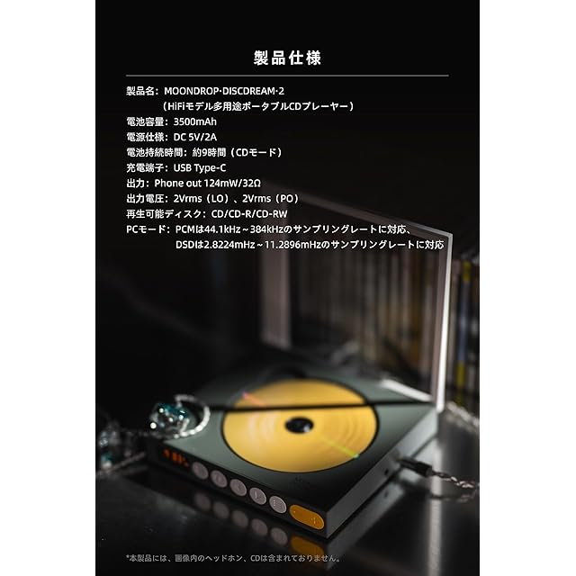商品名:Moondrop CDプレーヤー DISCDREAM 2 ポータブルcdプレーヤー ポータブル 多用途 CDプレーヤー【 / 3.5mmイヤホンジャック / オーディオ専用CDレーザーヘッド / 100段階の音量コントロール / USB外付 けタイプサウンドカード機能 / NDK製音響用水晶振動子を3基搭載】
