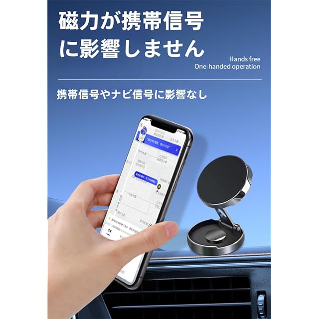 『超強力なマグネット・』強力なマグネットが内蔵されており、スマートフォンをしっかりと固定します。いつもフルシグナル、スムーズに通信できます。磁力を損なわず寿命10年以上。走行中の振動や急加速、急ブレーキなどの動きにも対応でき、ホルダーが突然外れてしまう心配がありません。マグネット式ホルダーで片手で操作ことが可能ので、快適にドライブをお楽しみいただけます。