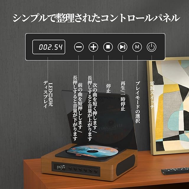 【多彩なファイル形式に対応&様々な場所に適用】本製品はCD,CD-R,APE,FLAC,CD-RW,MP3,WMA,WAVなどのディスクとフォーマットに対応した幅広く使えるコンパクト音楽CDプレーヤーで、家、部屋、喫茶店、教室、レストラン、パーティー、集まり、飲み会など多くなシーンにも適用されます。高級感が溢れるオシャレで人目を引くデザインはインテリアとしても最適です。ご注意:ブルーレイディスクが再生できません、ご了承ください。