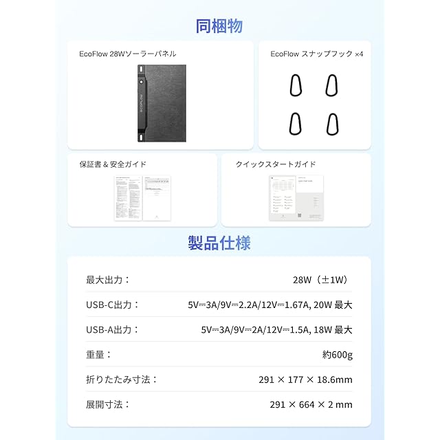 商品名:EcoFlow 28Wソーラーパネル 太陽光パネル USB対応 2ポート 折りたたみ式 携帯充電器 超軽量600g IP68防水 単結晶 25%高変換効率 軽量 防災グッズ 停電対策 アウトドア 防水 地震 災害時 キャンプ アウトドア