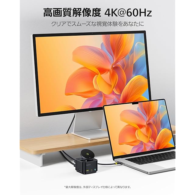 【4K@60Hz 高解像度画面出力】HDMIポートを使えば、最大4K@60Hzの解像度でモニターやテレビ等の外部ディスプレイに接続可能。鮮明で鮮やかな大画面映像と高いリフレッシュレートで、なめらかで没入感のある視聴体験ができます。